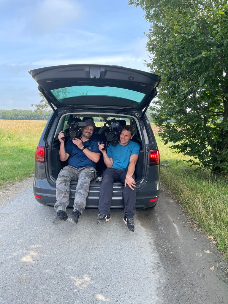 Dreharbeiten im TeichTeamlagerBjörn und Rummel freuen sichTeam Münsterland DekoRasenkantenschneiden😉Team 2021