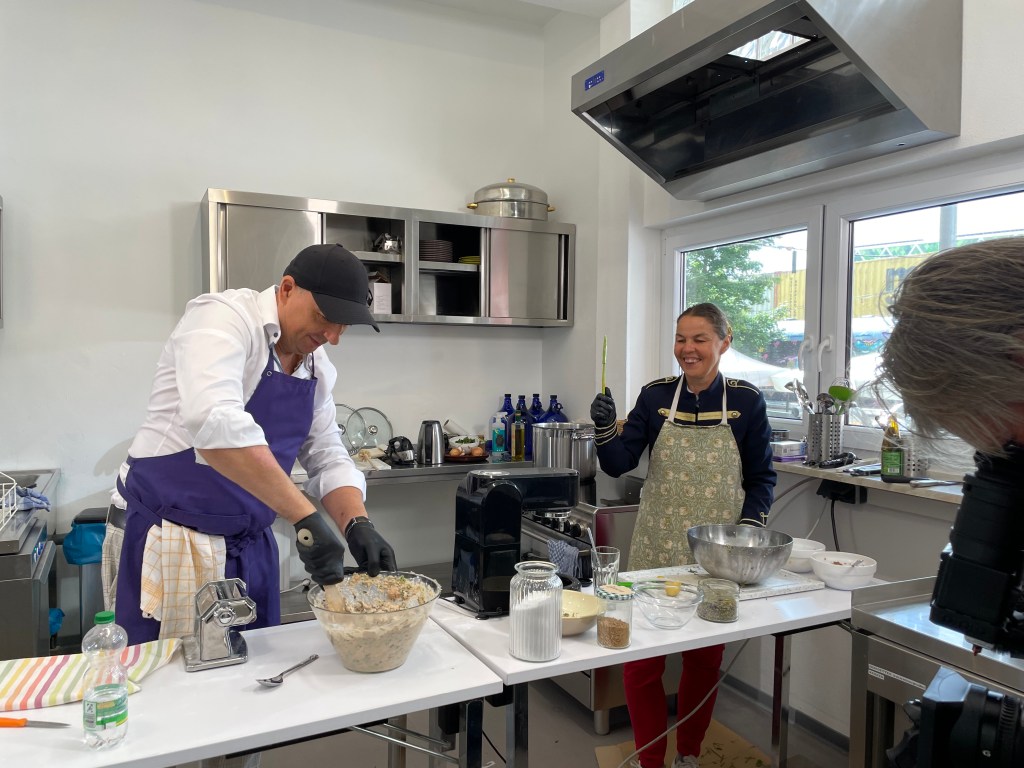 Schalke-Fans überall 😂Die MoselschleifeCooking + filmingBehind the scene: Koch Max, Co-Autorin Anja, AL Larissa, und ich😊Team Jan Bleeker und seine Wein-SoLaWi