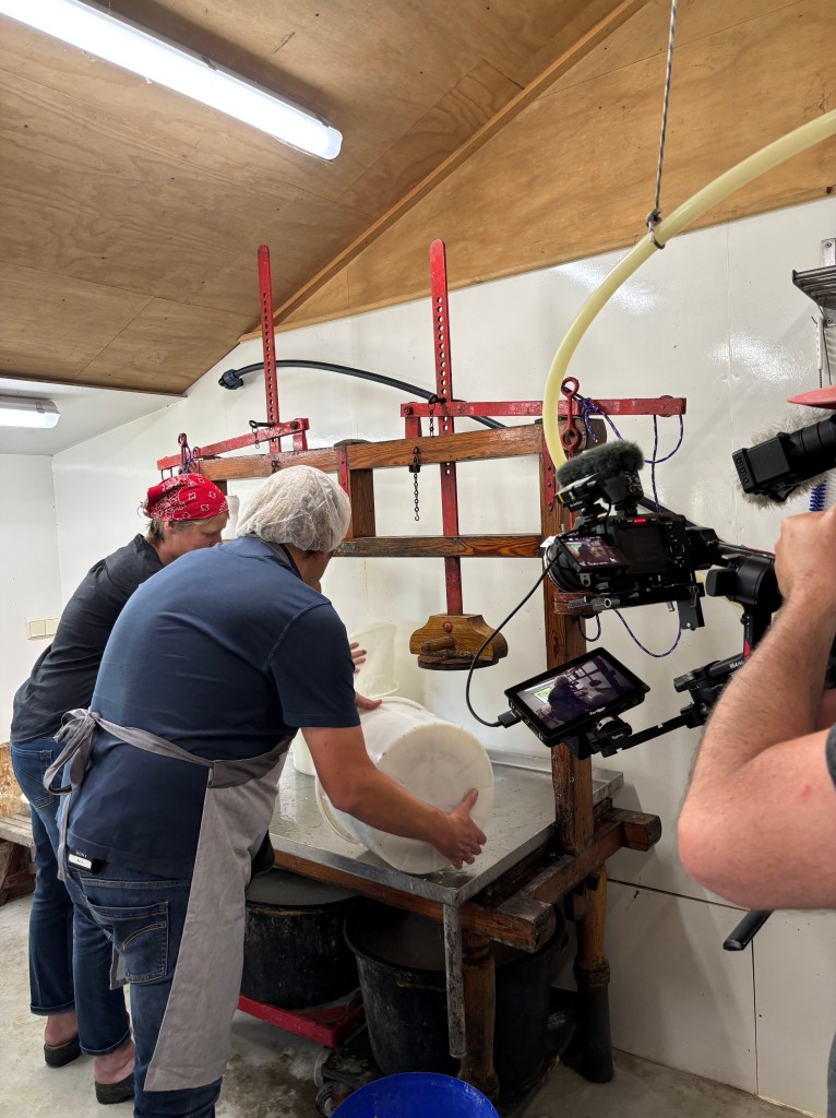 Dreh auf der WeideIn der Bio-KäsereiImmer schön mit HäubchenKräuter-Gabi Frank Buchholz bei Schloss MoylandSchloss MoylandTeam behind the scenesAnlegeschluck